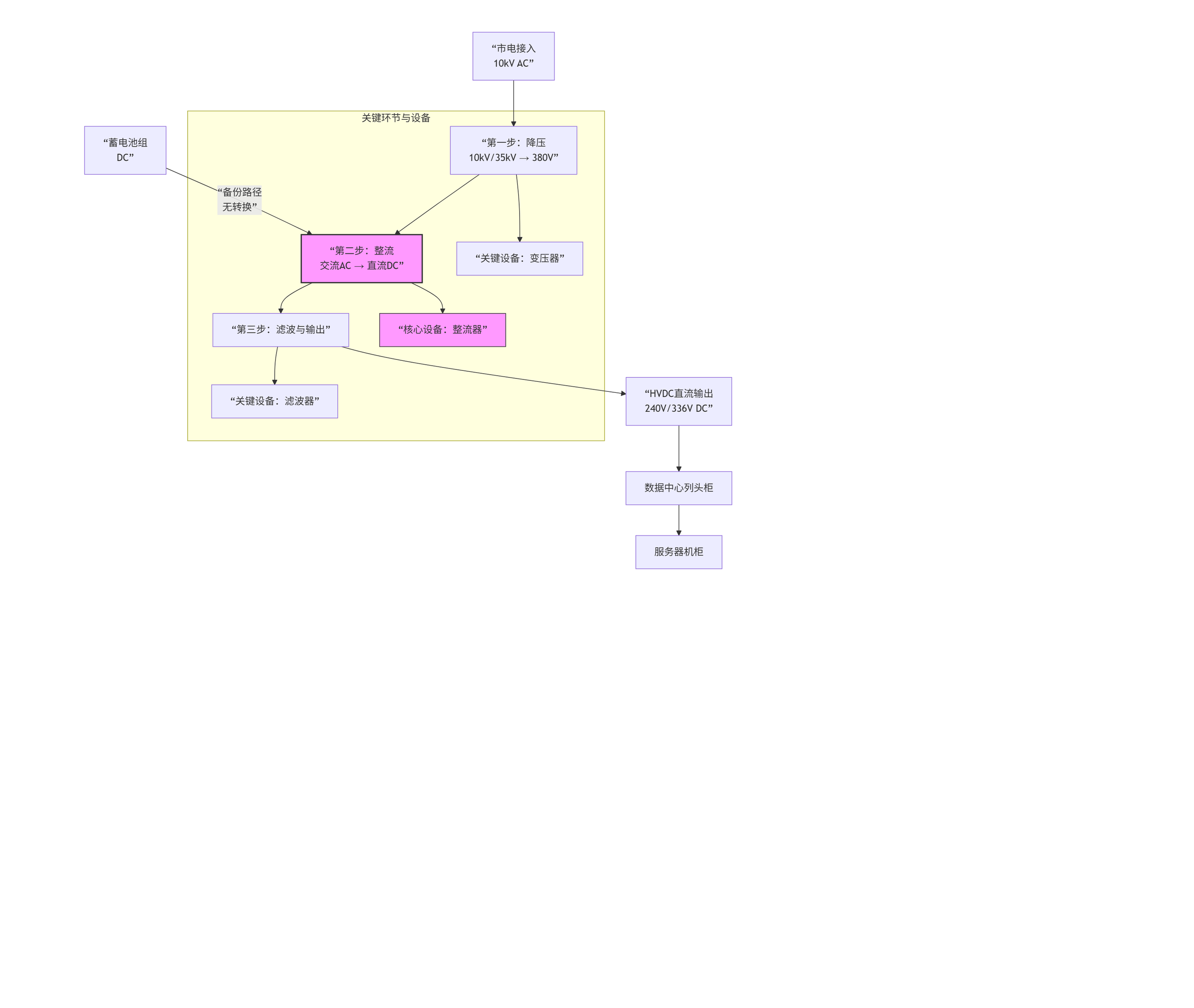 HVDC architectures use ±240V to ±800V high-voltage DC bus systems for direct server supply: